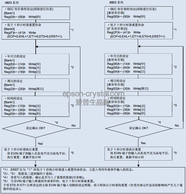 下文詳細(xì)說(shuō)明使用上述兩種對(duì)時(shí)方法相關(guān)的寄存器,重置的動(dòng)作及設(shè)定例。使用上述方法之前,務(wù)必先從外部輸入已同步的時(shí)間信息。