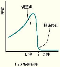 圖(c)所示的為振蕩電路的特性,將T的L先調(diào)整至最小,使諧振電路呈電感性。然后,再調(diào)整鐵芯,使L增大,在諧振電路成為電容性時,會馬上使振蕩停止。接著,將調(diào)整點調(diào)至振蕩停止點的稍微前方處即可。