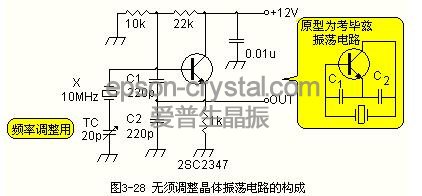 圖28所示的為無調(diào)整晶體振蕩電路。其原型為考畢茲振蕩電路。