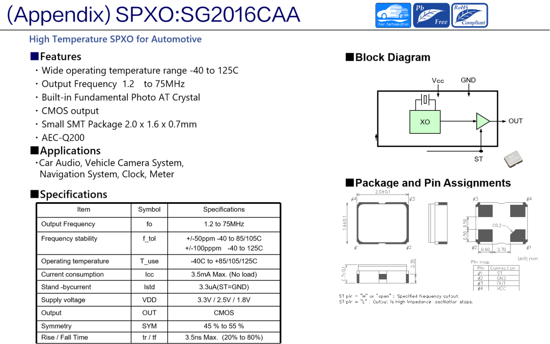 對于芯片的穩(wěn)定工作,高性能的晶體晶振必不可少。愛普生的晶體晶振有著高可靠性,低功耗,小封裝的特點(diǎn),并且通過AEC-Q200認(rèn)證,讓行駛更放心。推薦SG2016CAA,SG2520CAA可編程有源晶振配合HUD芯片使用。